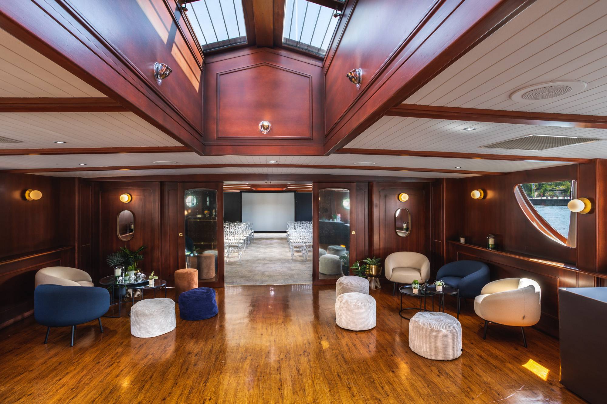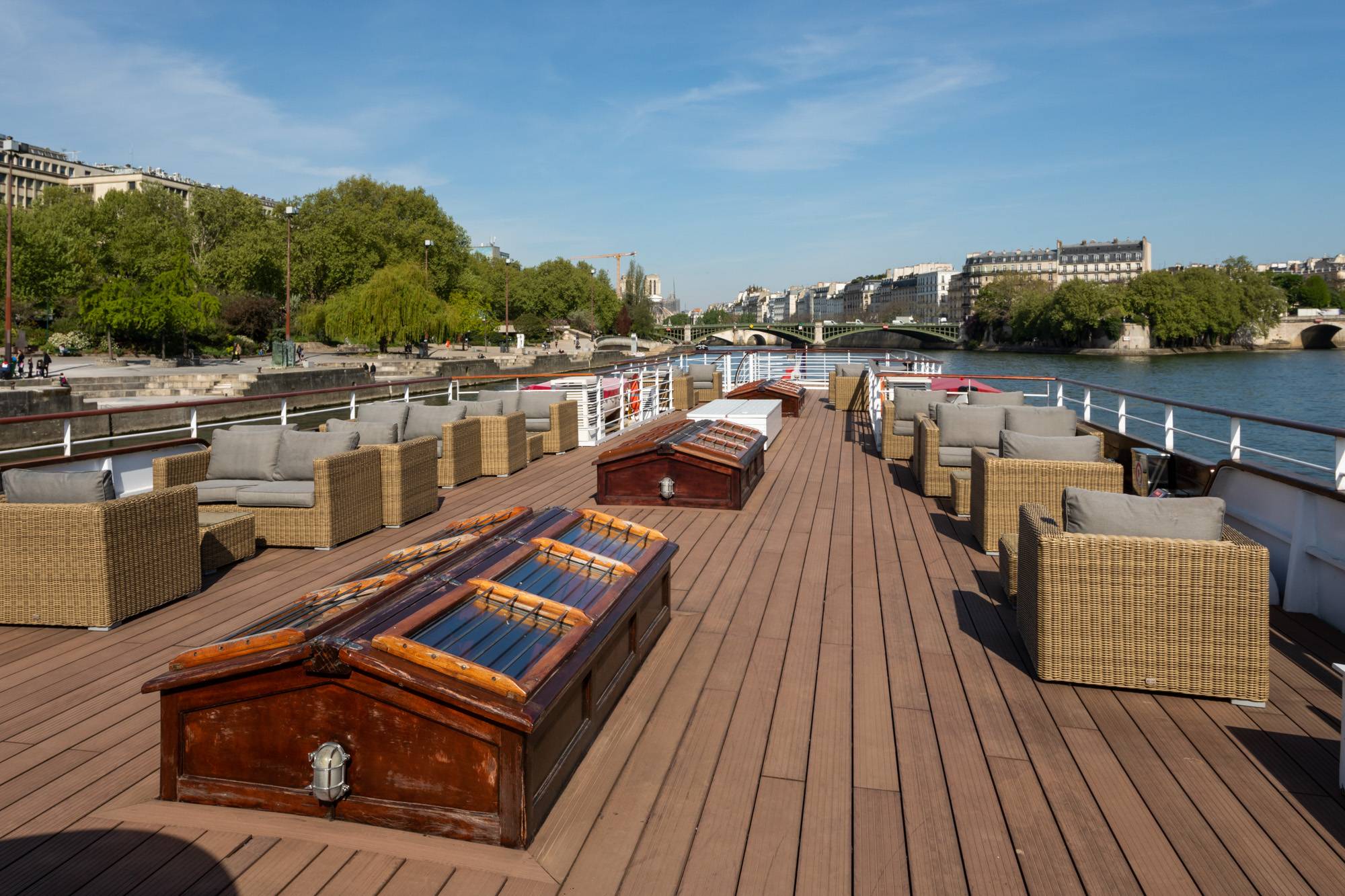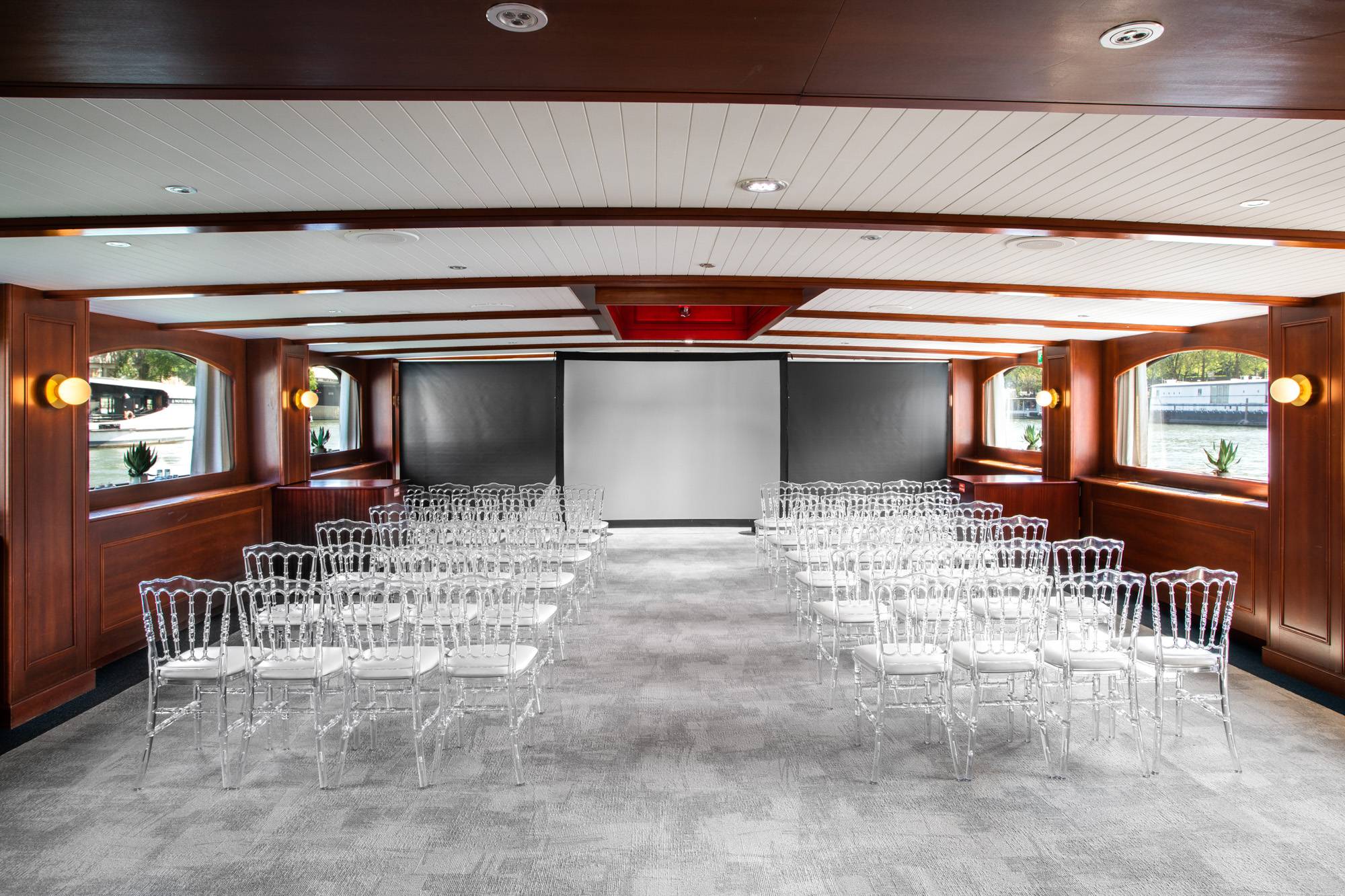 Cette péniche est le lieu idéal pour ceux qui recherchent luxe et excellence lors d’une réception haut de gamme. Offrant des prestations raffinées, elle accueille vos événements dans un cadre élégant et sophistiqué. Son intérieur feutré, habillé de matériaux nobles tels que le bois et le cuir, séduit par son charme discret et son atmosphère chaleureuse. Un vaste bar intérieur sublimera votre cocktail, tandis qu’une grande terrasse aménagée avec du mobilier de qualité vous permettra d’admirer pleinement la beauté de Paris.