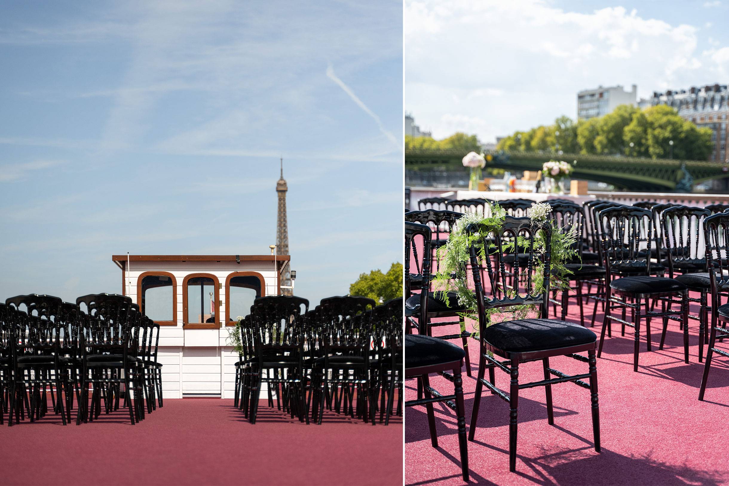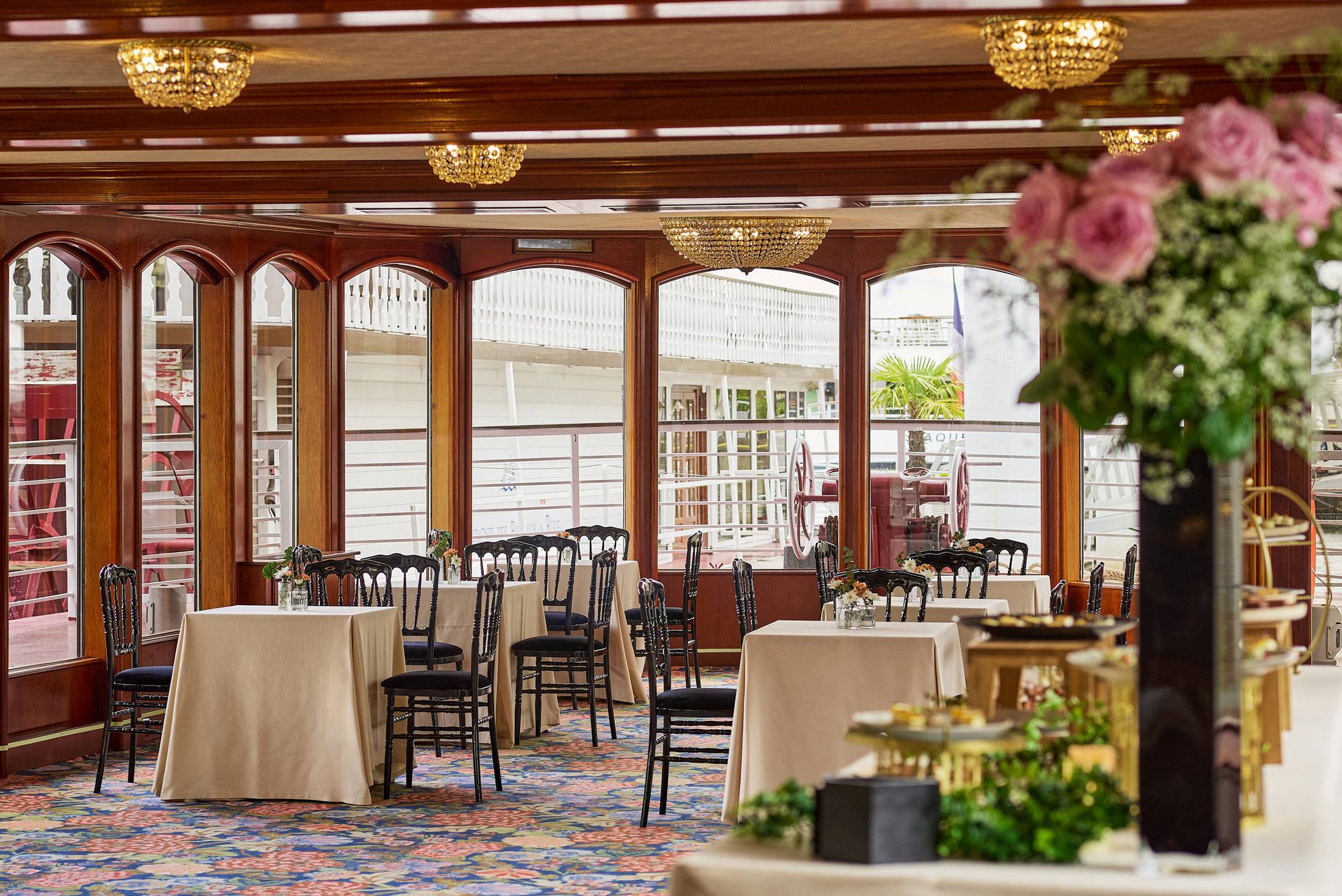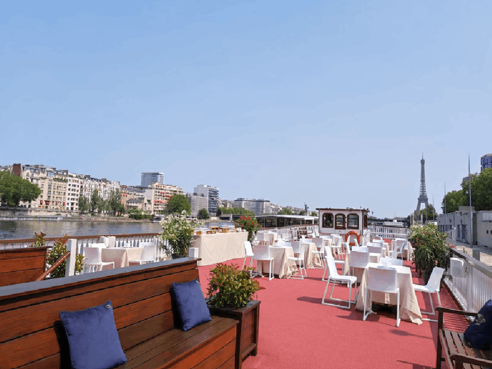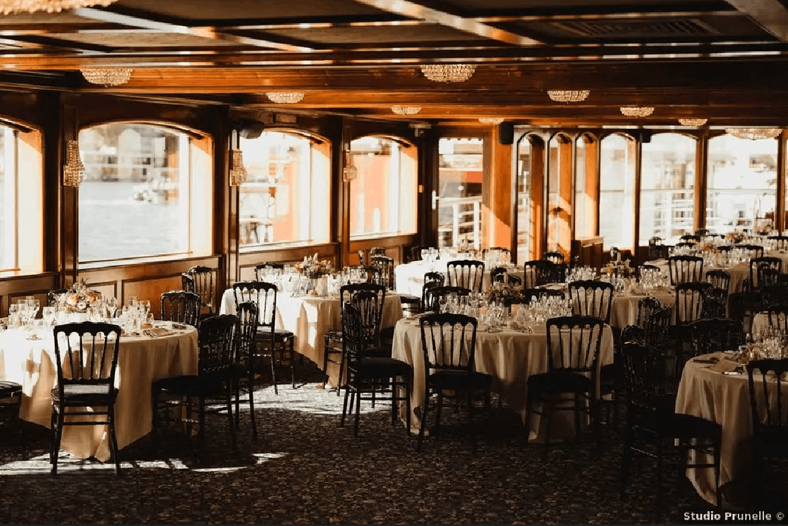 Cette péniche est l’adresse idéale pour offrir à vos invités bien plus qu’une simple salle de réception : elle les plonge dans une véritable immersion hors du temps. Son atmosphère unique évoque l’élégance de la Louisiane, comme si une part de son charme avait été transportée au cœur de Paris. Sa vaste salle de réception de plain-pied permet d’accueillir l’ensemble de vos convives dans un cadre où la décoration d’époque sublime chaque instant. Vous pourrez ensuite profiter de son grand pont supérieur pour admirer les plus beaux monuments de Paris lors d’une croisière privée, confortablement installés sur la terrasse.