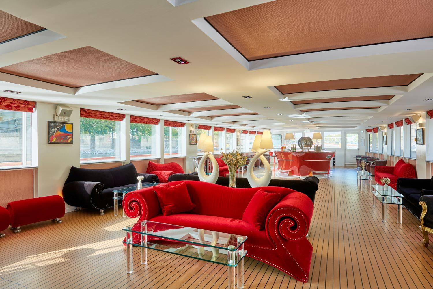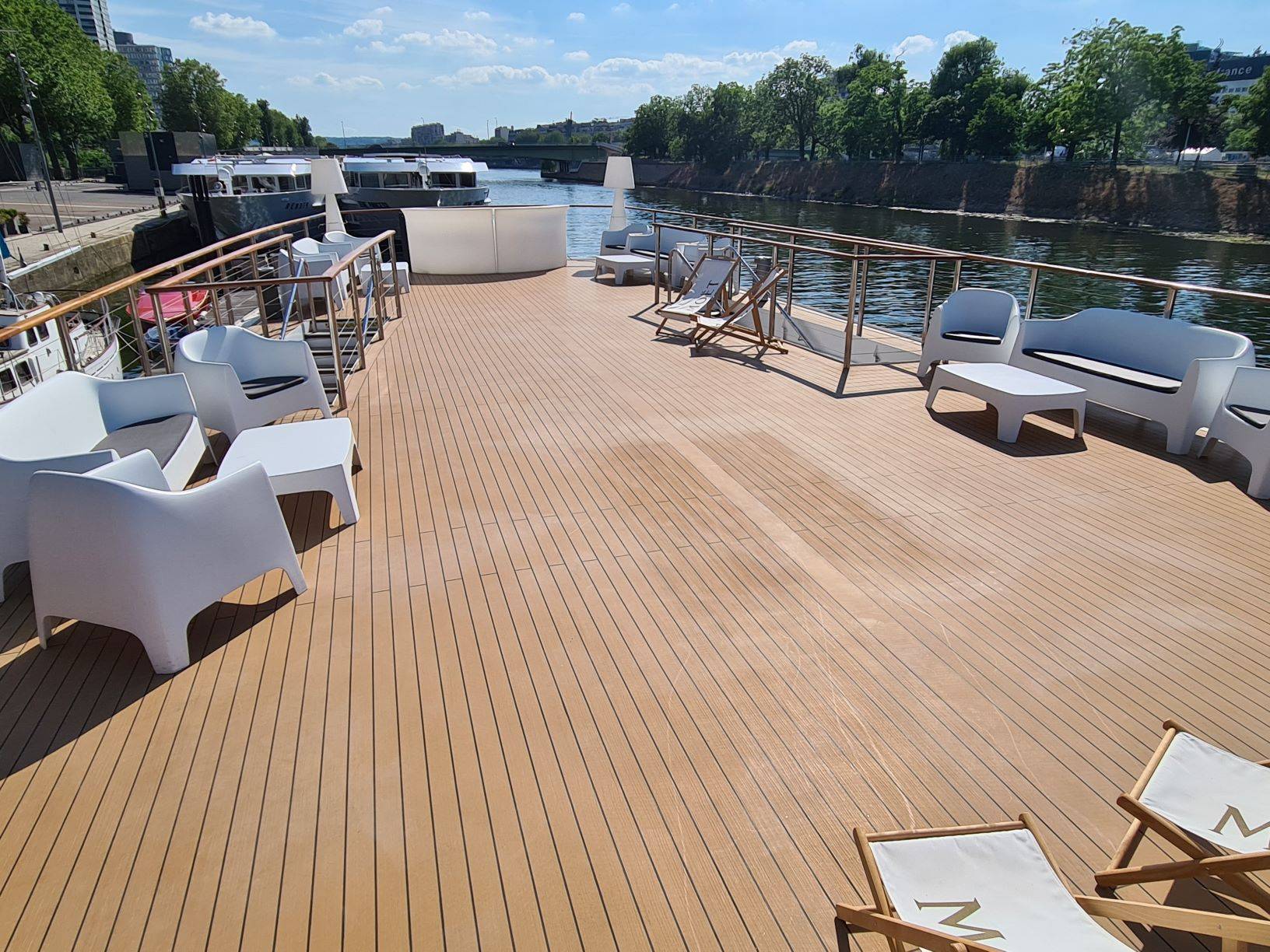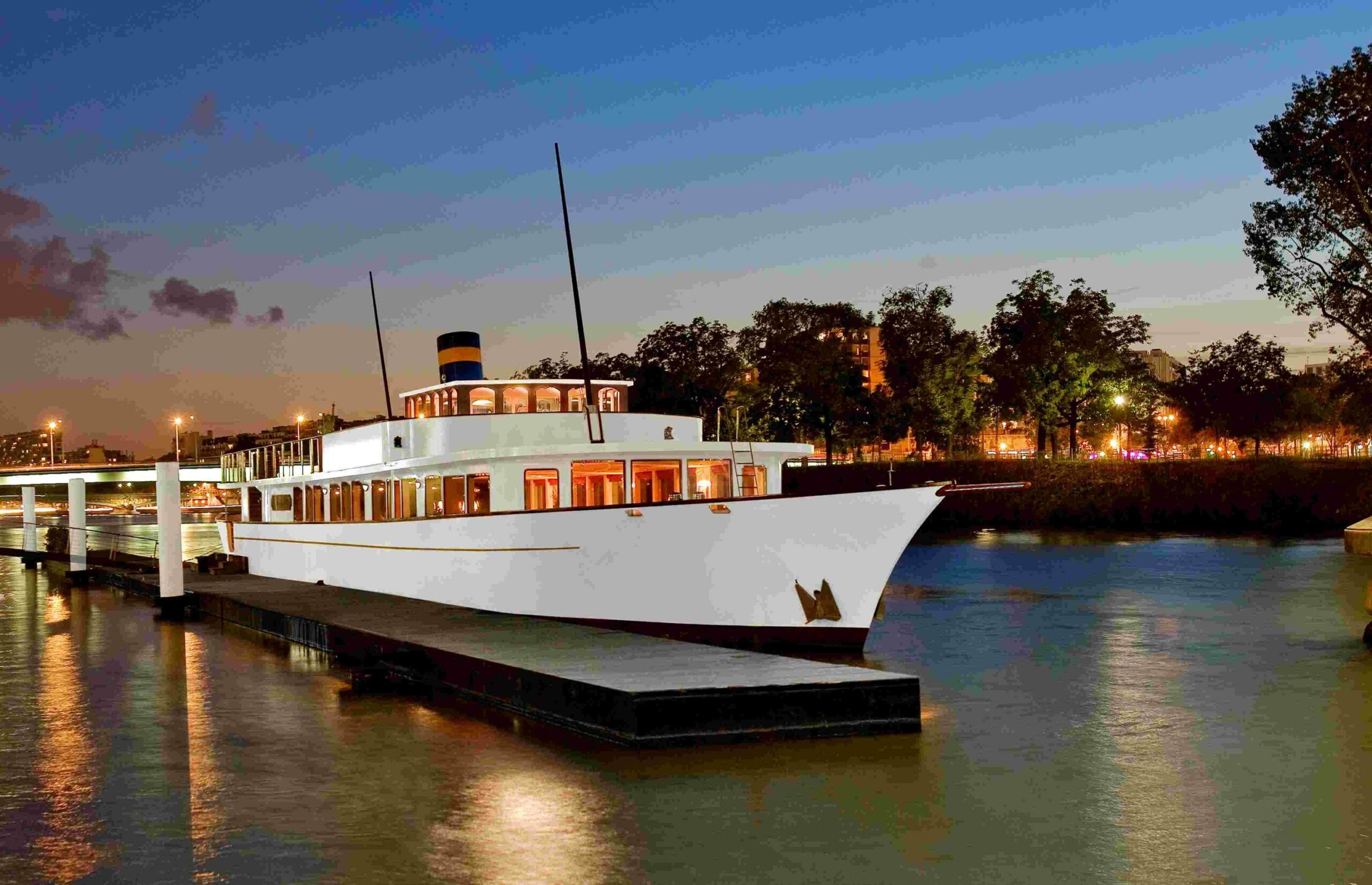 Ce grand bateau au charme élégant et luxueux, sublimé par un mobilier raffiné, un parquet soigné et de belles boiseries, vous plonge dans une atmosphère résolument prestigieuse. Sa vaste terrasse offre une vue privilégiée sur la Tour Eiffel depuis son emplacement à quai. Parfaitement accessible aux personnes à mobilité réduite, il bénéficie également d’un avantage rare sur les quais de Seine : la présence d’un parking à proximité, idéal pour accueillir vos invités en toute simplicité.