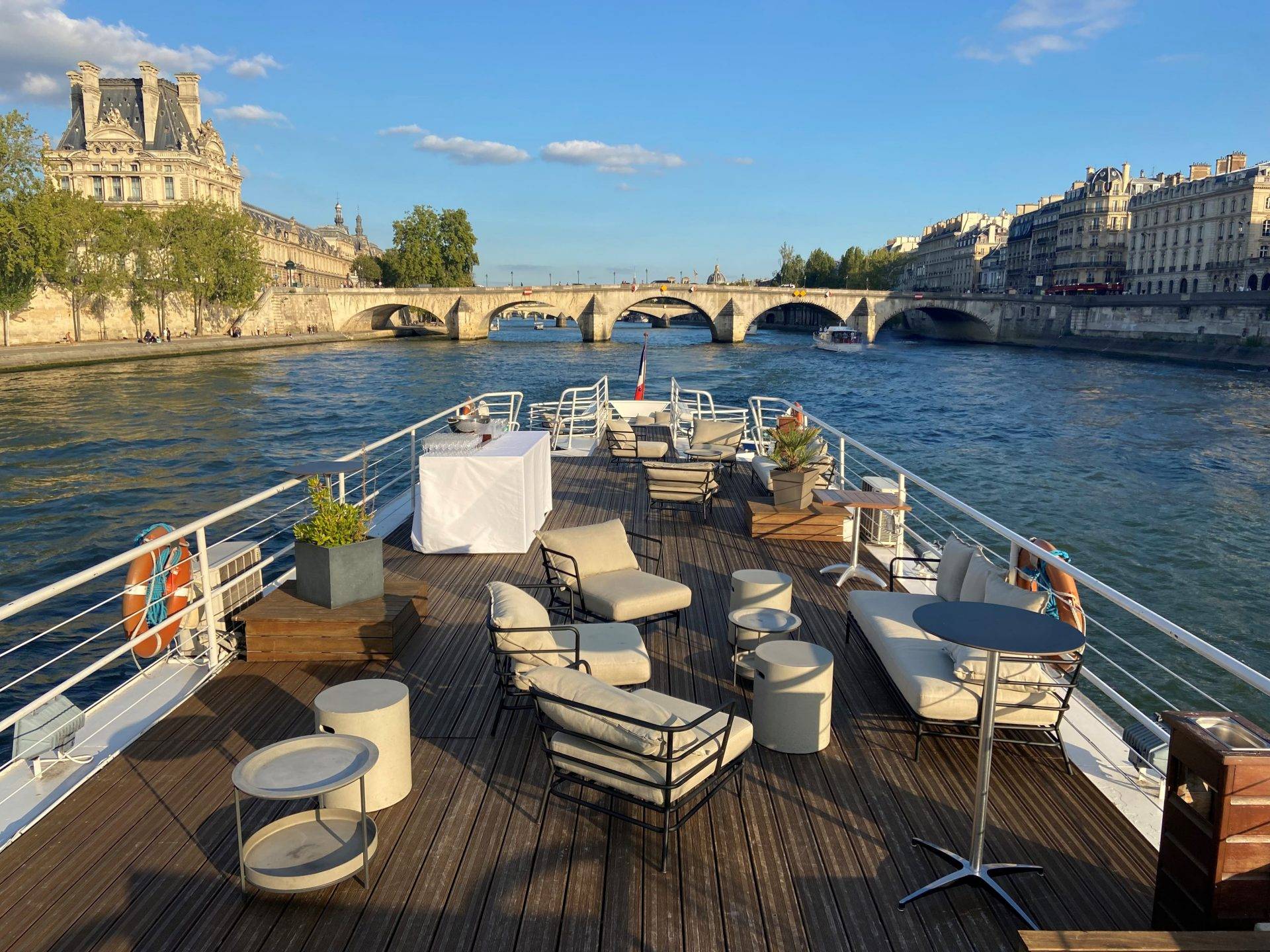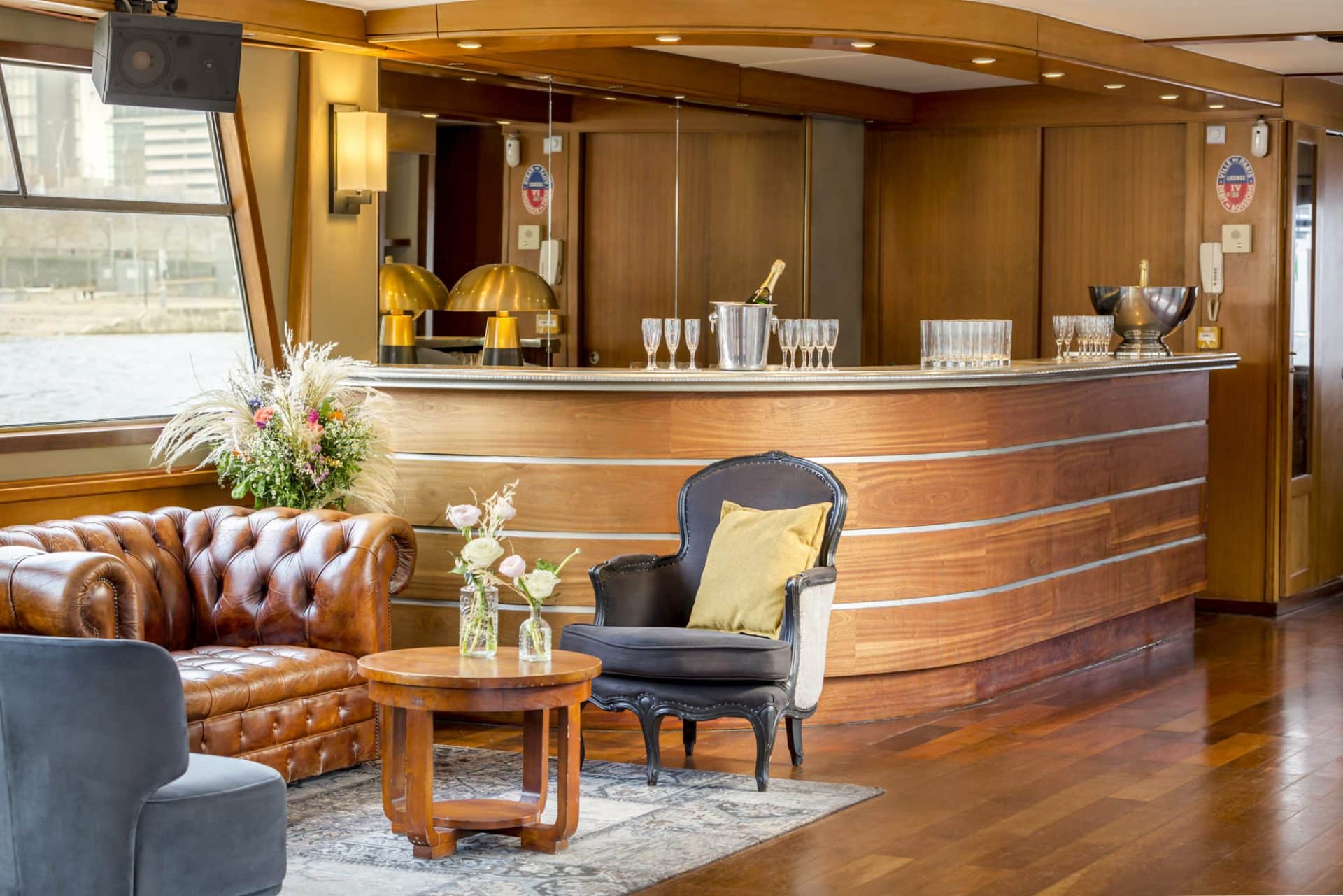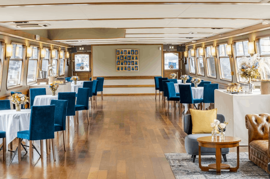 Cette péniche, mise en valeur par son élégance, séduit par son atmosphère intemporelle et sa décoration minutieusement conçue. Vous pourrez y savourer un dîner dans une salle chaleureuse avant de poursuivre votre réception sur une terrasse entièrement aménagée. Son vaste pont soleil constitue un véritable atout pour profiter d’une croisière mémorable sur la Seine.