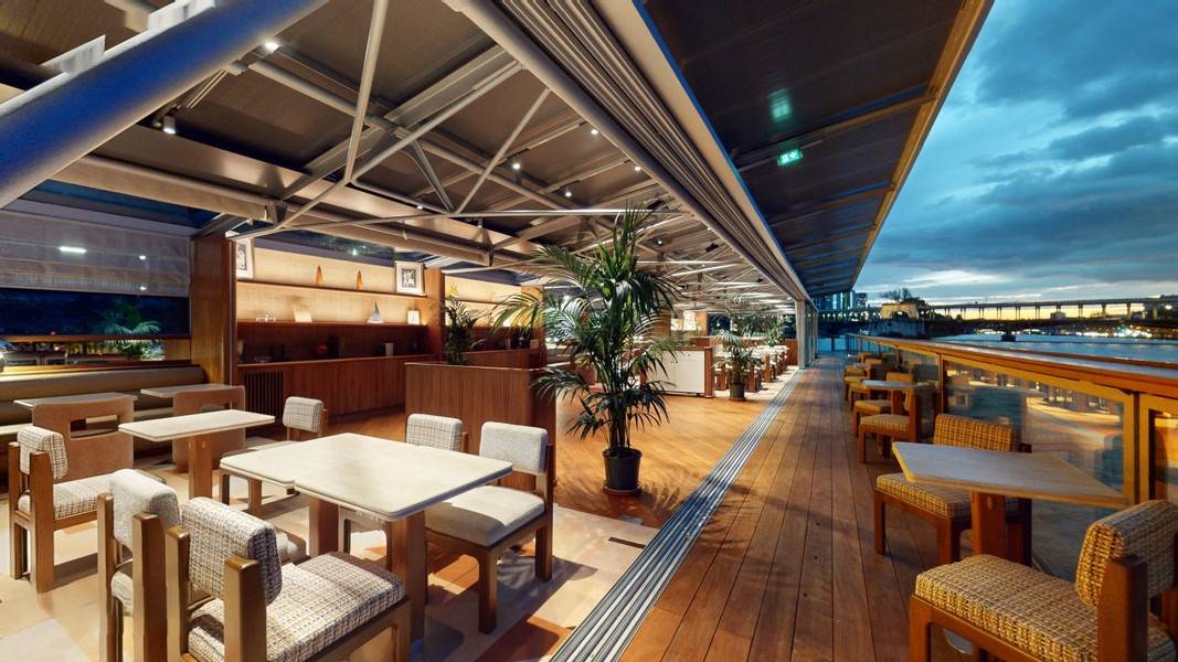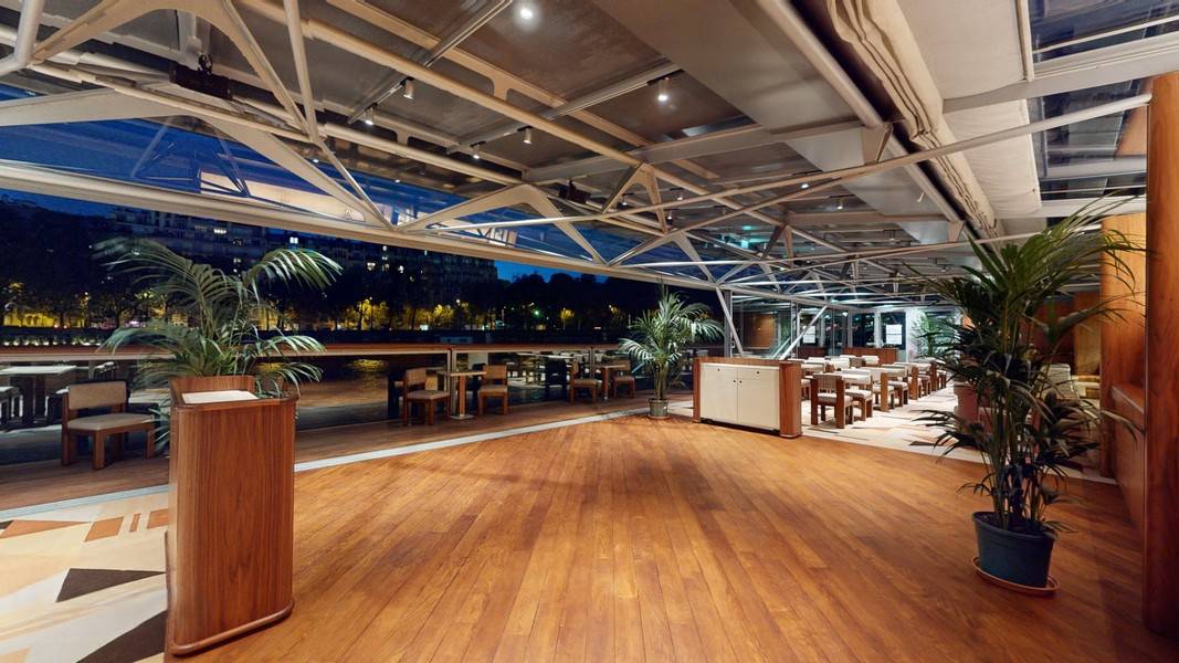 Situé au pied de la Tour Eiffel, ce lieu d’exception accueille vos événements professionnels ou privés de 100 à 400 personnes dans un cadre unique. Grâce à ses immenses baies vitrées entièrement ouvertes, la péniche offre une vue panoramique et imprenable sur la Seine. Doté de deux yachts de plaisance, l’établissement propose également une expérience de navigation privée, avec des virées de 30 minutes idéales pour des petits groupes souhaitant vivre un moment exclusif au fil de l’eau.