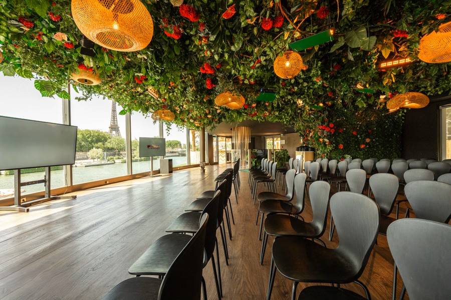 Ce rooftop atypique situé le long de la Seine offre une vue panoramique exceptionnelle sur Paris, bénéficiant d’un emplacement central qui saura séduire vos invités. En hiver, votre événement se déroulera dans une salle de réception entièrement vitrée, végétalisée et offrant une perspective unique sur la Tour Eiffel. En été, vous profiterez en plus de l’un des plus grands rooftops de la Seine : un espace au style exotique évoquant le sud de la France, d’où vous pourrez admirer la Seine et les toits de Paris depuis un point de vue privilégié.