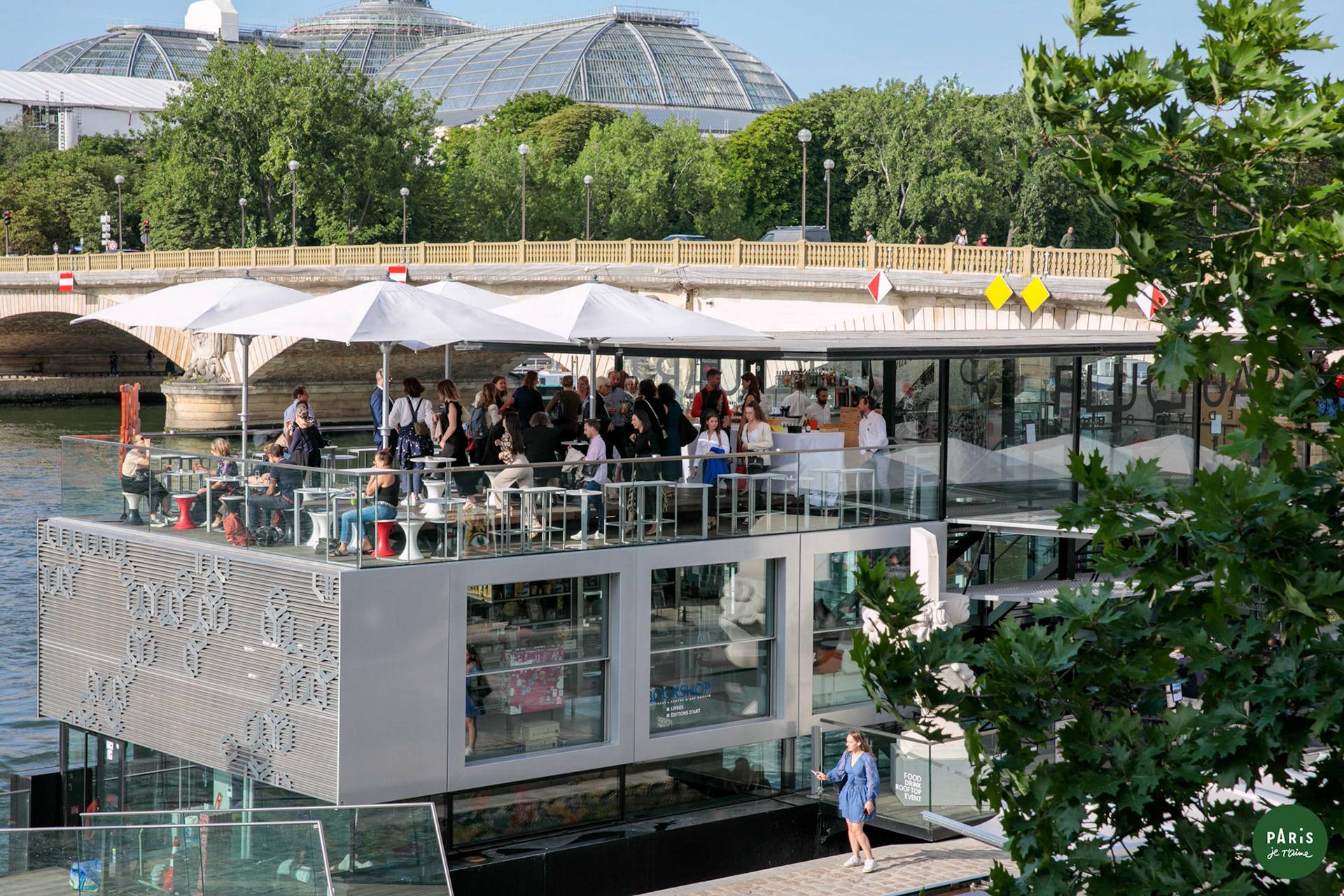 Cette péniche atypique, entièrement dédiée à l’art, offre une configuration modulable permettant de s’adapter à tous vos événements. Vous pouvez privatiser l’intégralité du bateau pour accueillir jusqu’à 500 invités en cocktail dînatoire, ou réserver une aile du lieu pour des réceptions plus intimistes dès une trentaine de personnes. Idéalement située à proximité de l’un des plus beaux ponts de Paris et bénéficiant d’une vue imprenable sur la tour Eiffel, cette péniche constitue un cadre unique pour une expérience mémorable sur la Seine.