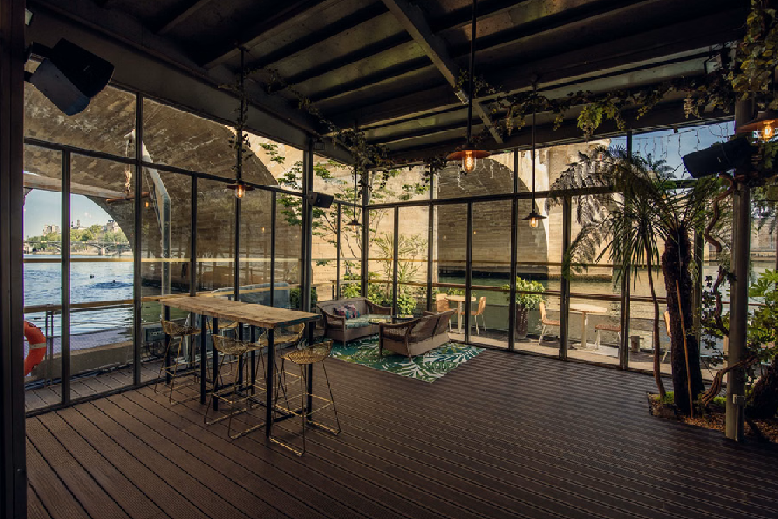 Idéalement situés sur la Seine, au cœur de l’Île de la Cité, cette péniche à quai offre plus de 500 m² d’espace de réception alliant modularité, confort et art de recevoir, dans la plus pure tradition de l’élégance parisienne. Ce bateau se compose de trois espaces distincts, parfaitement adaptés pour accueillir vos événements et échanger autour d’un cocktail dînatoire soigneusement sélectionné. Vous bénéficierez d’un vaste espace intérieur ainsi que de deux vérandas chauffées, dont l’une de plus de 100 m² en bord de Seine. Une large gamme de services est également proposée pour répondre à vos besoins, de l’équipe de barmans aux tours en Riva sur la Seine, pour une expérience aussi raffinée qu’inoubliable.